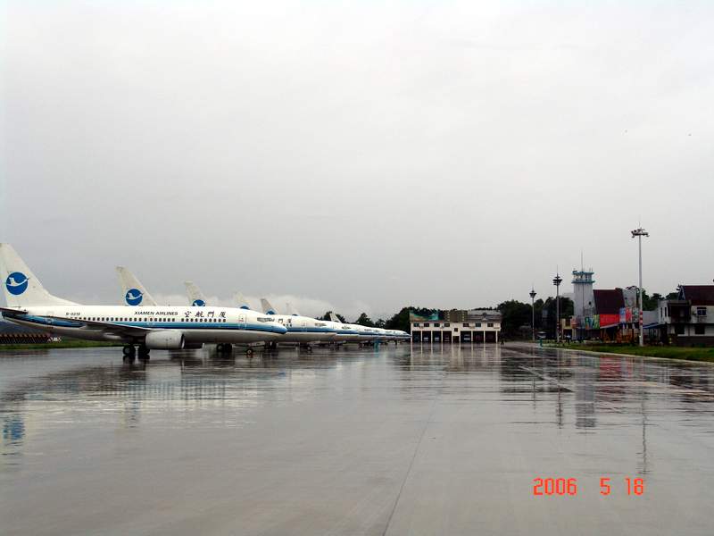 武夷山机场2002年重组以来,大力加强场道、灯光、通信导航设备设施建设,加强机务、航务建设,加强运行管理和员工队伍建设,机场综合保障能力得到了切实提高。通过建设改造,机场停机坪从18000平方米增加到了现在的46600平方米,可同时停场飞机从4架增加到了10架,这都为此次7架飞机能够同时停场过夜打下了基础。