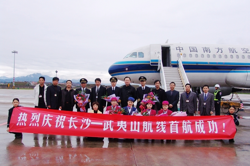 2009年3月29日上午九点零五分由南方航空公司执飞的长沙至武夷山首航班机在武夷山机场降落,这条航线的开通将给两地的航空旅游市场带来新的发展机遇,同时随着长沙至武夷山定期航班的通航,对促进两地的经济文化交流将发挥积极的作用。