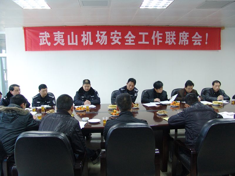 1月15日,由航站派出所主持的安全工作联席会在航空宾馆会议室召开。会议邀请了赤石派出所、机场周边各村治保主任、武夷大学保卫科、武夷街道综治办和司法所参加,就维护武夷山机场周边环境安全事宜进行座谈。武夷山机场有限公司苏中才副总经理和相关部门负责人应邀出席。会上,左良辉所长对过去一年来各单位关心、支持武夷山机场安全工作表示感谢,并介绍了航站派出所在机场安全运行中的工作情况。公司相关部门负责人分别对机场净空、电磁、飞行区警卫等国家、民航局法律法规及武夷山机场相关规定向与会人员作了说明,让大家进一步了解维护武夷山机场周边环境安全的具体工作内容和重要性。苏副总介绍了2009年武夷山机场的总体工作情况,并告之3月5日武夷山机场将执行厦门——武夷山航班加密计划,广大村民出行将更加方便。希望大家一如既往地共同维护好武夷山机场周边环境,大力支持武夷山机场安全工作,促进武夷山机场稳定、持续发展。